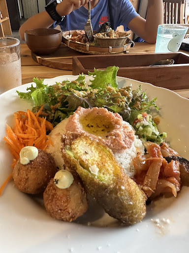 Read moreGreat variety of food, featured two seasonal dishes in summer. Refreshing vibe with relaxing music, staff very polite and helpful.what I have is a seasonal veggie dish. Miso soup and pumpkin soup is very dedicated prepared. I can tasted the multi layer of texture and taste from the dishes. They even have kids size for one of the dishes. The fried chicken on his plate was very juicy. All in all, it was a very superb and unique dinning experience I ever have in Japan.