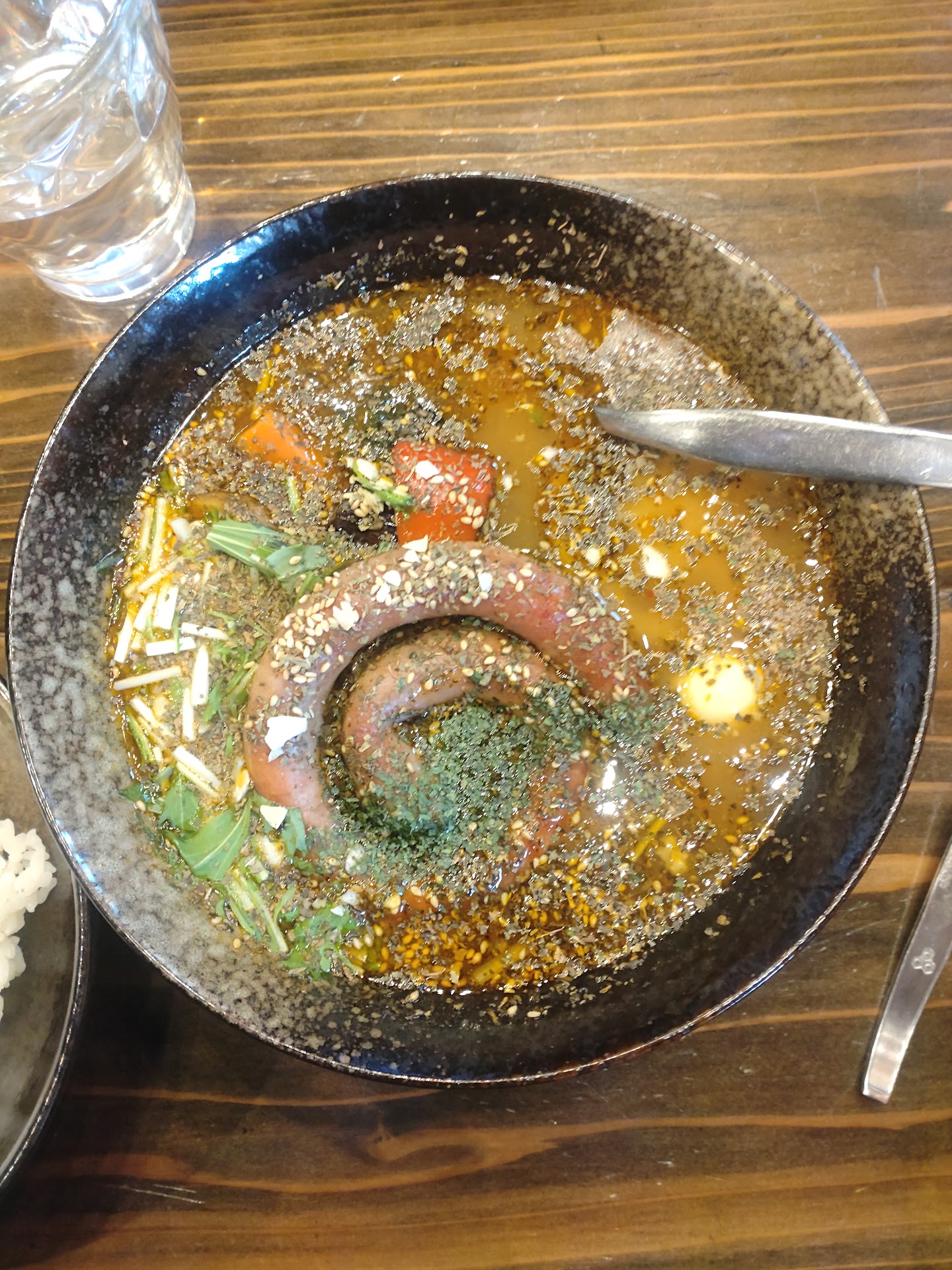 Read moreSuper cozy place with friendly staff for some great soup curry. Hokkaido is famed for many types of food and soup curry is on that list. Mog Mog serves up a delectable soup curry that comes in varying degrees of spiciness with tons of spices and fresh vegetables in the soup. You have a choice of the protein in the soup and it also comes with a plate of white rice. From the very first bite of the soup curry I was instantly enthralled in a wonderful mixture of flavor and fragrances. I had only gotten spice level 4, but it was just enough heat to warm the body but not enough to make the flavor unbearable. I had also gotten the time limited pork sausage that was made locally and that was so wonderfully flavored I definitely could have eaten maybe 2 or 3 more of the sausages even! The location is easy to find and definitely worth coming to. Space is quite limited so there might be a queue...