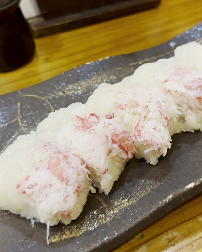 Read more富山駅近くの居酒屋街にある魚と日本酒が美味い店🐟 ネットで精査して見つけて気になったお店!外観から雰囲気があり期待が高まります🏮 店内の雰囲気やメニューのラインナップもバッチリ過ぎてテンションあがる🔥 気になるの色々ありましたが、4軒目だったので気になるやつに絞っていただきました😂 一番インパクト強かったのは白えびとかにの棒寿司!お値段踏まえると2,3切れくらいなのかなぁと思いきや、丸々一本でてきて驚いた🙄 見ての通り白えびと蟹がハーフ&ハーフでたっぷり乗ったこの上ない贅沢な棒寿司🤤 白えびもカニ身も味わいが濃厚でほんっまに美味しくて、インパクト強過ぎました😂 お値段もさることながら、関西ではまぁいただけないであろう一品に大満足でした💯 カワハギは肝和えに薬味が効いてて、これ自体が薬味のような役割しててめちゃ良かったです。カワハギの身に乗せても相性抜群やし、そのまま食べても日本酒が進みまくる最高のアテでした🍶 そしてお決まりの白子。こちらの白子は基本生🤤...