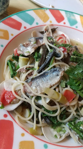 今日は季節柄 山菜のピザ、以前食べて美味しかった 生ハムとクレソンのピザ、 コシアブラ、ススタケ、コゴミ、アサリ、オイルサーディン等の入った山菜のパスタを食べました。