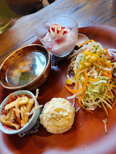 子どもは離乳食のプレート(3点組み合わせ)、僕は週替わりランチの油淋鶏を選択。子どもの世話の方が大変で、自分が味わって食べることは全くできませんでした。 世の中のお母さん方の大変さが改めてよく分かりました。