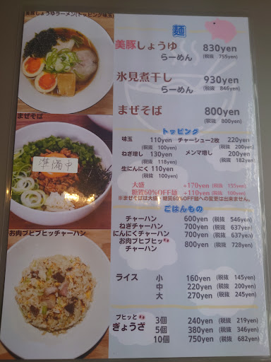 Read more夫とは2回目で、少し早めのランチ時間帯に来ました。注文は呼びボタンを押します。お水はセルフサービスです。初めてのときの注文が、美豚しょうゆラーメン、チャーハン(取り皿・私用)、焼き餃子、ラス夫が生ビール(糖質オフタイプでした)、今回の注文は、中華そば糖質オフの麺(プラス料金で選べます)、ねぎチャーハン(今回も取り皿お願いしました)、から揚げのポン酢がけ、プラス夫が生ビールでした。 ラーメンの出しは、しっかりした感じで、唐揚げも下味のしっかり感があり、濃すぎず、薄すぎず、どのメニューもとても美味しかったです。 別の日の昼ピークが過ぎた頃、一人で、混ぜそばを食べに来ました。少しピリ辛ですが、寒かった日で、追い飯(無料)で、きれいに完食です。 大型テレビで米津玄師のミュージックビデオを見ながらで、時間帯によって違うのかな?!仕事の帰りで、いい休憩時間になりました。 あとテイクアウトで、焼き餃子を買いました。夕食に、フライパンにくっつかないホイルで温めても、もちもちで美味しかったです。ラーメン以外のメニューテイクアウトOKとのこと。 夕食の時間帯にも行ってみたいし、ほかの...