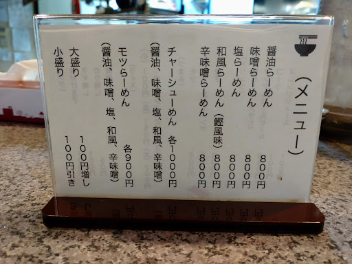 Read moreモツらーめんというのは珍しいと思い来店しました。 店内は、カウンターが10席ほど、お座敷が4人がけ1テーブル、テーブル席が4人がけ1テーブルありました。 未就学の子供だとお座敷がいいと思います。子供用のお座敷椅子が用意されていました。