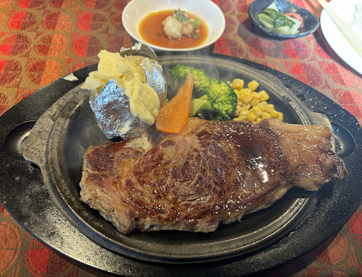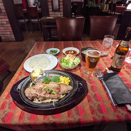Read more平日の12時頃に訪問しました。 店内にはテーブル席、お座敷、カウンターがあり、私と友人が来店した時点でお客さんは1組だけのようでした。 牛サーロインステーキセットを注文しました。セット内容はサラダ、漬物、お味噌汁で、ステーキの付け合せにじゃがバターまでついていました。お肉は130gとの事ですが、食べてみるとそれ以上のボリュームがあるように感じ、硬めの焼き加減も相まって食べ応え満点で美味しかったです。 私としてはちょうどいい量でしたが、友人には少し量が多かったようなので少食の方にはちょっとキ...