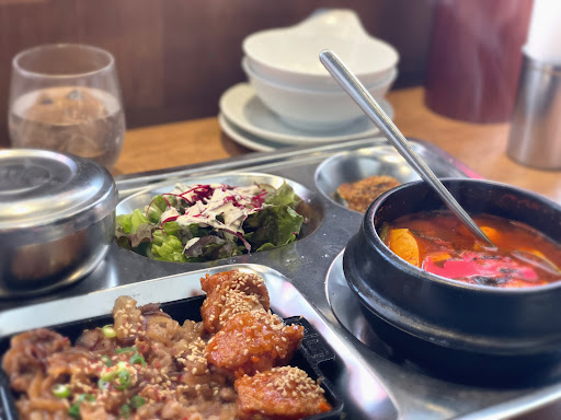 Read more日曜日の12時30分過ぎに初めて訪れました。以前富山駅中店でランチをして美味しかったのでまた他のメニューも食べてみたいと思っていました。こちらのお店は昨年の10月に店舗リニューアルをされ、テレビでも紹介されていて気になっていました。 お店はとても綺麗で中に入るとまず目に入るのはテイクアウトの受付カウンター。某ファーストフード店?韓国料理店とは思えないようなポップな感じがして親近感あります。 お店はとても広いのですがテーブル席は満席だったので窓側のカウンター席へ。沢山あるメニューからプルコギ定食(1280円)を注文。最近冷え込んできてるので特にスンドゥブ鍋が楽しみ🫕しばらく待ちましたがアツアツの煮えたぎったスンドゥブ鍋を見てテンション上がります!辛い料理はそれほど得意ではないけどスープがめっちゃ美味しい。他にもいろんな料理が少しずつ付いてきてこのボリュームとお値段はリーズナブルです。次は気になったサムギョプサル食べてみたいです。お店のスタッフ...