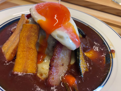 和牛ミンチと国産豚を使い 炭火で焼いたハンバーグ そこに田中農場の目玉焼きや イベリコ豚のベーコンやチーズ 季節の野菜を彩り良く配置した とても贅沢なランチです