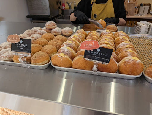 Read more立ち並んだ店舗の一角にあり共同駐車場の為、車停めは少し大変。8月中に行ったが店内の混雑を避けるためか隣の空きテナント内を待ち合いヶ所にしてます。暑い中なので冷房は、無いですが屋内で待てるのは助かりました。店内はシンプル。美味しそうに出来上がったドーナツがズラっと並びどれにしようか迷ってしまいます。スタッフの笑顔と挨拶が少し足りないかなと思いますが礼儀は良いのでまた行きたい。きなこ味とカスタード、ホイップを食べました。あっさり味。ふわふ...
