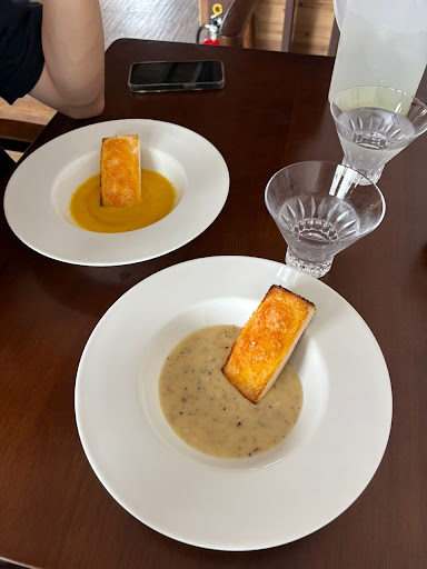 评分如下: 南瓜浓汤配蒜香面包:9/10 黑松露马铃薯泥浓汤配蒜香面包:8/10 沙拉:7.5/10 番茄火腿意面:...