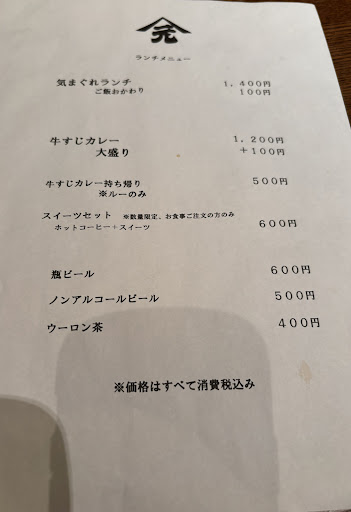 他の方が投稿されているような和食を期待して行きましたが、私が行った日の気まぐれランチはビーフシチューでした。 ランチはカレーかビーフシチューしか選べなかったので少し残念でしたが、『気まぐれ』なので仕方ありませんね。Instagramなどで今週のメニューをアップするなど工夫があると良かったと思いました。 雰囲気、味◎ カレーの横にあったサラダの中に赤茶色で少しウェーブがかかった髪の毛が入っていました。 我々家族のものではありません。 今後気をつけるといいと思います。 今回のデザートはパウンドケーキ。 アイスやクリーム、果物などの付け合わせはありませんでした。 駐車場は少し離れたところにあります。 案内板があったので迷わず行けました。