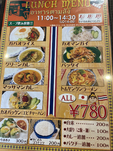 Read more富山では珍しいタイ料理のお店。ランチタイムにお邪魔しました。カオマンガイとグリーンカレーのセットとガパオライスとマッサマンカレーのセットを注文。注文時にカレーの辛さの説明や辛く出来る事も教えてくれて親切でした。 カオマンガイは、しっとりとした蒸し鶏でそのままでも美味しいのですが、つけダレが絶品でジャスミンライス?に良く て合います。グリーンカレーやマッサマンカレーも本格的な味わいで、旅行に行った気分になれます。次はトムヤムクンラーメンを食べに来ます。 追記 2024年5月16日に来ました。今回は、カオソーイを注文しました。ココナッツの香りのカレーラーメンのような料理です。トッピングはレッドオニオンに揚げ麺パクチーと見た目も美しい。スープは濃厚でスパイシーで複雑で美味しい。麺は中細麺で、スープに良く合います。具は柔らかい手羽元が3本ほど入ってました。揚げ麺とレッドオニオンのトッピング良いですね。パリパリ、シャキシャキとして良いアクセントになってます。もうこれは、麺を食べ終わったら、ご飯追加必至です。スープにご飯をぶっこんで...