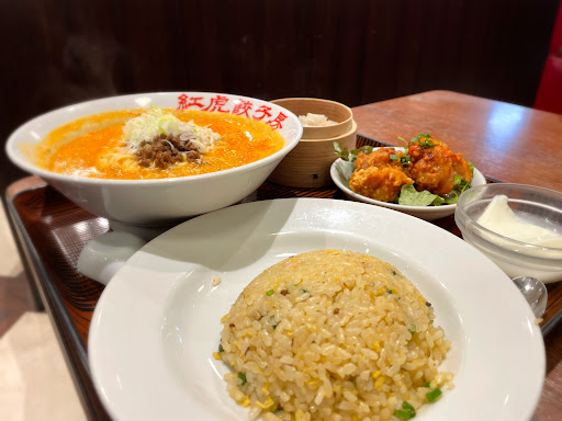 Read more紅虎餃子房といえば際コーポレーションで全国展開しているチェーン店です。ちなみに隣の萬力屋も同じ際コーポレーションですね。 こちらのチェーン展開されているお店は、何店舗も行っているのですがどのお店も一定のレベル以上の満足感があるのでよく使っていました。 さて、こちらのお店ですがファボーレ内に出来たときには結構待ち時間があるくらいの人気がありました。現在は店舗数が増えたこともありますが比較的スムーズに入る事が出来ます。 この日は中華な気分でしたので、こちらにてお得な週替わりランチ(税抜990円)をお願いしました。 この日のランチは「海老と玉子のチリソース」がメイン。それに、サラダ、餃子3個、ライス、マンゴープリン、スープバーとコーヒーバーがついてます。 海老と玉子のチリソース炒めは海老も結構入っていて、少しピリ辛のチリソースも下手な中華屋さんで食べるより断然に美味しく完成度が高いですね。 これに餃子などがセットになって1,000円ほどで食べられるのはとてもコスパが良いと思います。 これが出来るのが大手チェーンのパフォーマンスなのでしょうね...