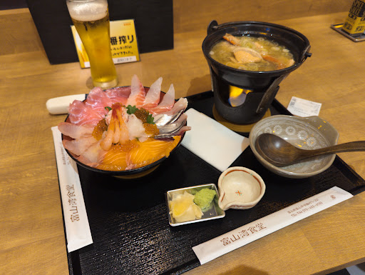 Chanced upon this as it is just inside the shopping mall adjacent to the Toyama Shinkansen station. Food is really quite decent given that the price is generally on the cheaper side. Order through the 2 kiosk machine, and it is easy to use unlike some review said it is difficult. It's as simple asbordering McDonald - just look at the photos. Paymemt usint cash and not credit cards. Note that almost all items came in 2 prices, the more expensive one (like Y500 more) came with a fish head miso hotpot. I doubt not many tourists know how to enjoy that, but it is really...
