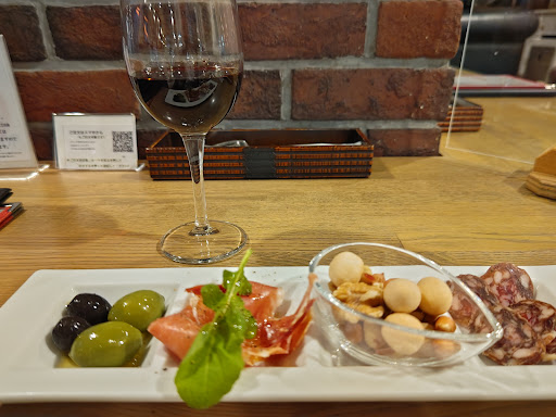 (2023/11/06)日帰り富山ガラス美術館の旅。東京からの初便の到着が11:00過ぎ、総曲輪の美術館を優先したらランチ難民となってしまった。コーヒーショップで甘いもの飲んで空腹を紛らわせた。美術館以外の予定はないので駅でお土産買って空港へ。1階の寿司屋前には7〜8人居たが準備中。喫茶室とハンバーガー屋。店先のメニュー見たらピザもあったから入ることにした。まずはビール。マルゲリータ、これは宅配ピザのLサイズ、生地はもちもち、ピザソース、チーズ、バジルの葉の匂いも鼻腔くすぐるフレッシュさ。ビールと一緒にLサイズが胃袋に消えた。ちょうどその時、離陸が35分遅れるアナウンスが流れた、強風の為だが。PIZZAが美味しかったから他も美味しいに違いない。で、グラスワイン赤を頼み、おつまみ4種盛りも注文、順番は違ったがアタシの好きなオリーブ、グリーンとブラックオリーブ、じゅわぁっと塩味が効いたオイルが旨い。ルッコラと生ハム、赤ワインが進む。くるみと丸い菓子、中にはレーズンが、でサラミが数枚、じゅわぁっと旨味が出て旨い。食べ終わってこれが空腹じゃなかったら入らなかったなぁ~と。ここを目的地にしても良いんじゃないかと思ったほど。柱の周りの椅子がローチェアのソファ、テーブルはチェアの低さからすると高くて食べにくい、そこに案内されたなら他に移った方がいいかも。飲むだけなら...