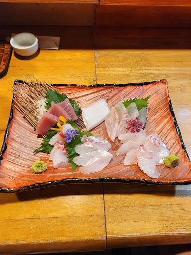 Read more白海老刺身と自家製蛍烏賊沖漬けとお造りを頂く。 白海老刺身、他のお店とは鮮度が違う!それが甘みに食感にでる。 自家製蛍烏賊沖漬け。自家製の名に偽り無し。苦みゼロ。奥深い味。 大将に選んでいただいた羽根屋さんの日本酒で頂く。合う。錫製?の器に注ぐと味が変わる?是非味わってもらいたい。 料理のお皿も美しい。