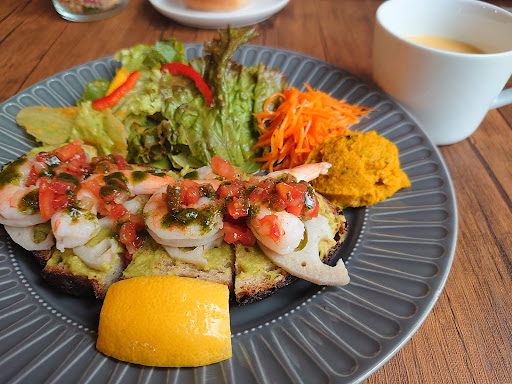 Read more閑静な田園地域で静かです。 風の通りが良く木々に抜ける風の音が心地よく感じます。看板が少しわかりにくいのですが、駐車場もある程度の車が入ります。お店の雰囲気も良いので、女性客が多いです。 関心なお料理ですが、この日はBランチ、Cランチをいだきました。Bランチは、サラダにかかったオレンジのドレッシング、オープンサンドのハーブソースなどお洒落ですが、万人向けではないかもしれません。ハーブが嫌いな方は苦手な味になり、ソース別添えなら良いかもしれませんが、しっかりハーブなので頻繁に日本人が食べたいかはわかりません。 Cランチは、ポトフの素材の味がどれもぼんやりしているのと、やはり好き嫌いは大きく別れる味です。私はしっかり味付けした日本の肉じゃがよほど美味しいと思いました。クスクスは爽やかな味で美味しかったです。 コーヒーは、かなり薄め。普段はブラックですが、ミルクと砂糖を入れてみると完全にコーヒー牛乳になるほど薄いと思います。 メニューの数が少ないのだから、何度も食べたくなるような味であって欲しいのですが、少し狙いすぎているの...