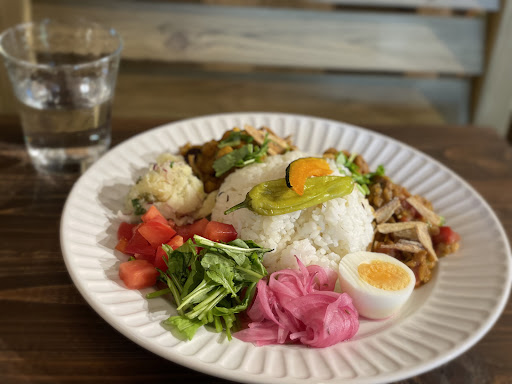 料理が提供されるまで、店内にある雑貨やドライフラワーなど見て回りました。 しばらくするとワンプレートに、綺麗に盛り付けがされたカレーが運ばれて来ました。 これはお花屋さんのセンスでしょうか!彩りが豊かです💐