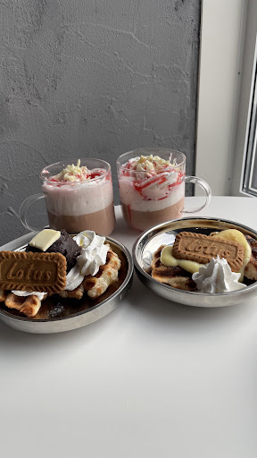 注文したのはクロッフルと季節限定のストロベリーホワイトラテのホットです。味はそこそこでした。 韓国っぽいオシャレな雰囲気なので推し活や中高生にはいいかもしれません。 ただ、席が少ない点や待ち列がテーブルの真横にあって気になる点などで長時間の利...