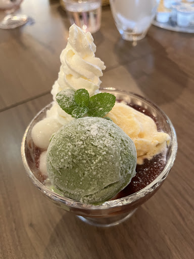 まず、使っている素材が悪い。 アイスクリームも市販。白玉ぜんざいのアイスは丸くしてから冷凍庫に入れているので霜だらけで、ガチガチでした。 フルーツも少しですし、生クリームも市販の出来合いで酷いと思う。 店員は、おしゃべりに夢中なのでオーダーはミスするし、もう2度と来ないだろうけど、酷か...
