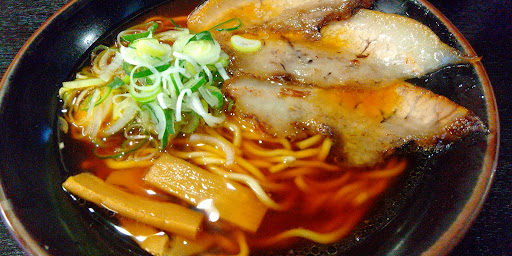 スープは醤油味ですね。 トリの他にも何か野菜の甘味を感じる··· とんとろはサシが入っていて、一瞬ギュウかとも思ったけども、やはりブタ。 とんとろといいつつ、油はしつこくない。よく噛むとショウガの味もするようだ。 麺は色味も薄いが、中太ちぢれ麺。 どこで食べたかな。自家製ではないけど、どこかの製麺所でつくってるやつ。 思い出せん···