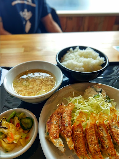 Read more以前ちょっと見かけて気になっていたこちらの餃子専門店。 ランチを食べに訪問しました。 場所は黒瀬の熊野川に掛かる八幡橋の袂で少し分かりづらいかもしれませんが看板や幟旗が出ています。 間口が小さく、小じんまりとしているのかと思いきや店内は意外と広くてビックリしました。 日替わり定食のほかミックスフライ定食や唐揚げ定食など餃子以外のメニューも充実しています。 今回は餃子が目当てなので、ダブル餃子定食(税込950円)を食べることに。 ダブル餃子は二人前の餃子(一人前8個)なのですが、こちらの餃子は小ぶりなので普通に平らげられるようです。 ダブル餃子の場合、普通の餃子とニラ餃子のハーフ&ハーフも出来るようなので両方味見してみたかったという事もあります。 さて、小ぶりの餃子は一口でもいけるような大きさで薄めの皮、焼色も程よく実に美味しそうです。 普通の餃子は野菜の甘みがしっかりと口に広がります。 ニラ餃子もたっぷりと入ったニラが良い香りで、食欲が増してきますね。 鬼おろしの大根おろしが付いてきますので、途中こちらと一緒に食べて味変が出来るのもなかなか良いアイデアだと思います。 定食には他に天ぷらの小鉢も付いていますが、まぁこちらはサラダや野菜系の一品の方がバランス的にはいいのかな。 特に奇をてらったものはありませんが、真面目に作った美味しい餃子でした...