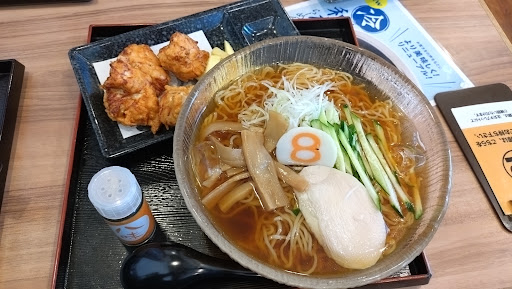 暑い日が続き☀️バテバテオヤジ🥵 今回は、北陸のラーメンチェーン 8番ラーメンさんへ🍜 小さい頃から、お世話になってます🤗 自分は、生ビール🍺とCセット(ラーメンと唐揚げ) ラーメンは、期間限定のざるラーメン🥰 嫁さんは、Aセット(ラーメン🍜餃子🥟ライス🍚) ラーメンは、塩ラーメン🧂🍜