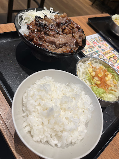 カルビ丼をオーダーしたが…肉は褒める程の旨みは無い。肉の臭みは噛んでいると普通は分かるレベル。 タレ好きな方は合うと思うが、特に甘さがくど過ぎて中盤から辛くなる。甘辛系のタレだが、焼肉きんぐ同様に甘々過ぎで卵焼きには砂糖派の私でも無理なレベルでした。 エリア系ではない、全国系フランチャイズ店はここに限らず、保存性を高める為?子供から大人まで対応の為か、何処も甘さが強すぎかと思います。