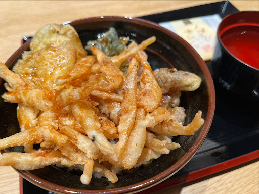 Ordered a white shrimp sashimi rice bowl and a tempura plate. It also comes with a noodle-like egg in the bowl. if you add too much shoyu you'll destroy it, so I add only a little bit of it. The sashimi tastes weaker than japanese sweet shrimp, so it didn't meet my expectation. But it's quite delicious and has a...