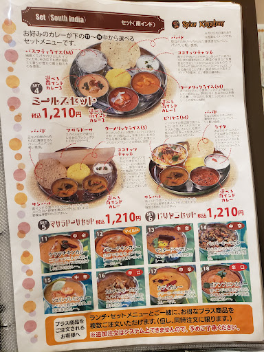 他のお店とは違って辛さが選べないタイプのお店でした。 基本中辛がスタートで、マイルドは、3種類くらいしかなく、旨辛も2種くらいだった気がします。 中辛以上は基本、自分で辛さ調節するスパイスがテーブルにあるのでそれで各自で調整するようです。 セットも限られているようで、南インドと北インドの2種類でセット内容が変わっており、各8種から、カレーを選ぶようであまり選択肢は結構限られていました。