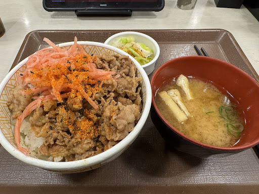 Read more朝定食をオーダーしました 生卵が付いてるプランでした、卵がプラスチックの容器とそれを含めて白い器に入って提供されたんですが、何処も同じですが、この店の提供の仕方に驚きました、卵の入ったプラスチック容器を取り出して、白い器で卵を割って、調味料🧂・カラシを入れてかき混ぜるのが普通ですが、 その白い器が水滴がいっぱい付いてました、なんの水滴かと思ったら卵🥚が入ってたプラスチック容器の綺麗に水滴を拭き取ってなくて、プラスチック容器の底の水滴がいっぱい付いた容器では、卵割って食べる気がしなくて、 店員さんに伝えたら、すき家はこれがマニュアルなので、底の水滴が付いていても当店は、言われた通りですとオーナーさんみたいな人の弁です