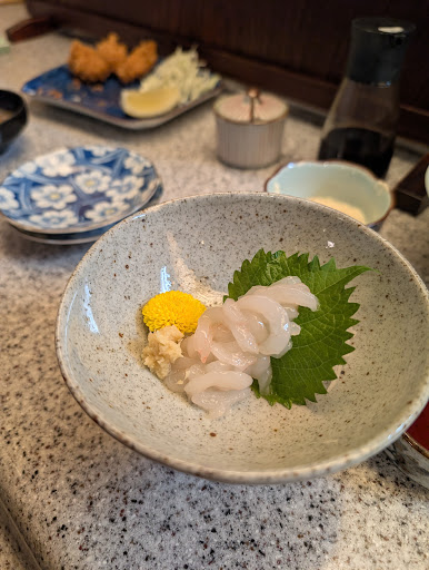 Read moreWe missed lunch and arrived hungry- which was a good thing- all the food was so delicious! Great seasonal seafood and excellent tempura, udon, yakitori, and sashimi (we ate a lot). The owners were very friendly and curious to ask about what we liked, and how we were experiencing our trip to Japan, despite limited English. There is an English menu. Don't miss the...
