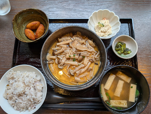 こちらのメニューはどれも健康志向な感じ。 今回は『きのこあんかけの豆腐御膳』を注文してみました。自家製っぽいお豆腐の上にたっぷりのきのこあんがかかっていて、食べ応えがありました。味加減もちょうど良く、美味しかったです。 こちらのお店は、ポイントカードがあります。よく来られる方は作っておくとよいかも。