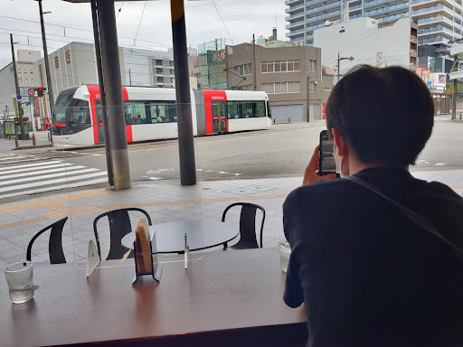 外に向いたカウンターは4席あり、路面電車が観られます。テーブル席もありますがそちらは窓がなく外は観られません。 なので小学高学年位のお子さんなら、カウンターで楽しめると思います(椅子が高いので小さいお子さんは無理です。店も静かですし)。