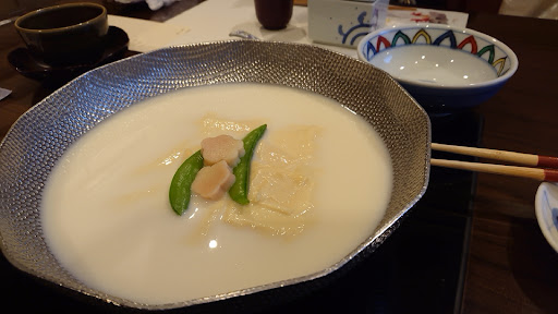 Read more懐石料理の梅の花膳を頂きました。鍋物は湯葉のしゃぶしゃぶで。プラスその場で松茸の土瓶蒸しも。 料理は全て美味しかったです! 特に、嶺岡豆腐、おつくり(刺身に湯葉ととろろをのせたもの)、生麩田楽、湯葉揚げ、湯葉グラタンが心に残る味でした。 もちろん、湯葉しゃぶもとても美味しく量も十分頂けて大満足。 土瓶蒸しも香りよく松茸の他に鱧と海老入りで鱧の出汁がよく出ていて追加して正解でした。ランチ・懐石に+500円は安いです。 子は野菜カレーと唐揚げを頂きこちらも美味しくペロッと平らげました。 お店の方々の料理の上げ下げの回数やタイミングもほどよく、料理についての質問もすっと答えてくださり流石だなと思いました。 予約の際に結婚記念日であることをお伝えしていたところ、最初にデジカメで写真を撮ってくださりプリントしてプレゼントして頂きました🎁 もうひとつ印象に残ったのが、個室のお座敷で「椅子」で食事できたこと。ちょうどよい高さの椅子だったので体がとても楽でした♪ それと、窓から庭園が望め紅葉が少し色づいて綺麗でした🍁 料理・部屋・心遣い全てにおいて大満足。私には5つ...