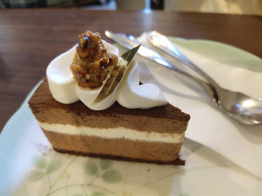 Read more愛知県豊明市にあるカフェ。キッシュのランチ等美味しそうメニューがありましたがお腹いっぱいだったので円(ブレンドコーヒー)を注文。店内は少し暗めで高貴な雰囲気漂う造りになってます。優しいBGMが流れているので、落ち着きます。手作りのシフォンケーキ・ケーキも販売してます。さて珈琲ですがここはかなり濃いめで苦みも強い方だと感じました。前提として珈琲は嗜好品であること、また苦いものだと言うことはあるけど、それを理解した上でも結構苦いです。これは個人の好みによるものなので、人によりけりですが自分は飲めるけど好みではないかな。次回訪問した際は抹茶ラテとかそっち系をいただこうと思います。あとケーキ気になったのでガトーショコラとモンブランを持ち帰りました。ガトーショコラ美味しいけど、後味がちょっとくどいかな。価格も530円とお高く、特別感もないので他のケーキ屋さんと比較すると割高感は否めない。次回、気が向いたらまた訪問すると思いま...