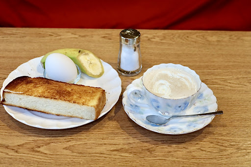 ◇ウィンナ珈琲(480円) ◆モーニングサービス (バタートースト+ゆで卵+バナナ)