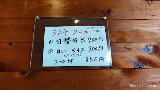 メニューは選択肢が少なく、ランチ時間帯は、日替弁当orカレーライス(コロッケ付き)の2択からで、飲み物はアフターコーヒーのオプション(アイスorホット)のみです。 迷うことが無いので、優柔不断な私にとっては、もってこいのお店でした🤭 各テーブルに灰皿が設定されており喫煙可能なお店でしたので非喫煙者の方やお子さま連れの方には厳しい環境です…。 キッズメニューは、ありません。