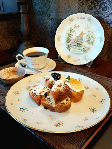 店主様とお話させていただきましたが、パンは自家製だそうです。ドライフルーツが入ったパウンドケーキのような感じ。 此方のお店で食べるべき逸品は、この自家製パンにクリームチーズと4種類のフレーバーで楽しめる「アトリエロールサンド」です。見た目も豪華なスイーツ的な一品。クリームチーズが甘さをいい感じに中和して濃厚さも加わってとても美味しいです! 見た目は名古屋の「かこ花車」のトーストに似ていますが、そこのインスパイア系というわけではないそうで、店主様の独創的な感性溢れる品ですね~