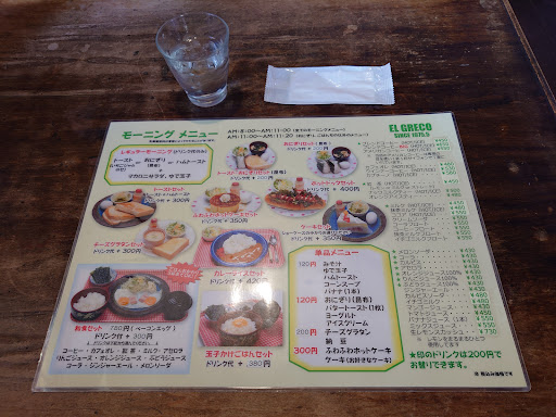 おはようございます。お疲れ様です。今日の朝イチモーニングは愛知県豊橋市のカフェレスト エルグレコに来ました。モーニングは豊富で10種類有ります。 ①レギュラーモーニング (トースト(ジャム付)orおにぎりorハムトースト+ミニサラダ、ゆで玉子) ドリンク代のみ ②トーストおにぎりセット トースト代+¥150 ③おにぎり(昆布)セット ドリンク代+¥150 ④トーストセット (トースト+ハムトースト) ドリンク代+¥280 ⑤ふわふわホットケーキセット ドリンク代+¥300 ⑥ホットドッグセット ドリンク代+¥380 ⑦チーズグラタンセット ドリンク代+¥280 ⑧ケーキセット ドリンク代+¥300 ⑨和食セット(ベーコンエッグ) ¥580 ドリンク代+¥280 ⑩カレーライスセット ドリンク代+¥400 以上です。 僕が注文したのは和食セットとアイスコーヒーです。美味しく頂きました。#愛知モーニング#豊橋モーニング#豊橋カフェ#カフェレストエルグレコ...