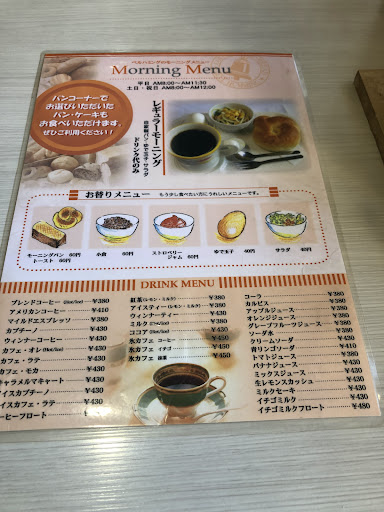 Read moreベル・ハミングさんに行きました。 パンとケーキ屋さんにカフェが併設されています。 駐車場は、お店の前と隣に第2駐車場がありました。 モーニングで伺いましたが、ほぼ満席でした。 店内は、昔ながらの喫茶店という雰囲気で、分煙され、雰囲気は良かったです。 レギュラーモーニング(ドリンク代のみ)をいただきましたが、380円とリーズナブルでした。 パンは、バターと砂糖が乗っており、ほどよい甘さで美味しかったです。 モーニング以外のメニューは豊富で、ランチでも楽しめると思います。 次回は、パンなどを購入...