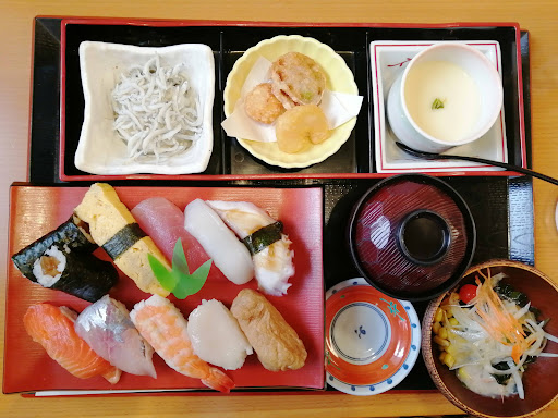 すごく久しぶりに行きました。駐車場は、店の横とその裏にもあるので、充分だと思います。ランチ利用です。今回は、まる九ランチにしました。1800円で、お寿司の他、煮物とサラダ、揚げ物が少し、赤だし、茶碗蒸し、そしてデザートの和菓子。 かなり味付け(煮物、茶碗蒸し)が濃いめ。仕出し屋さん仕様です。割烹系の味ではありません。 あと、気になったのが、かんぴょうが味が濃く、しかもまだ硬い。助六ランチも出しているのに、このかんぴょうでは、?。 殆どの人が1000円のすしランチを食べていたことに妙に納得しました。正直、煮物と揚げ物は不用かもです。ちなみに、すしランチは、お寿司と茶碗蒸し、サラダ、赤だしです。 お寿司のネタは、まぁ値段的には、相応が少し安いかな、というところです。 ランチには、お寿司の他にも、フライランチや、煮魚ランチ、刺身ランチなどがありました。 お寿司だけではないので、多人数でも利用しやすいかもしれません。