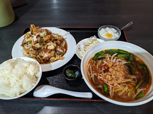 Read more油淋鶏定食は、ご飯と油淋鶏の他、サラダに漬け物、杏仁豆腐に加えて、好みのラーメンを選べます。今回は台湾ラーメンを注文しました。
