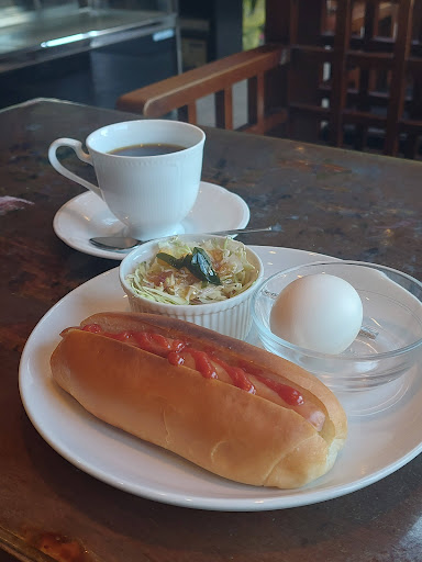 此方のモーニングはドリンク代のみの所謂レギュラーモーニングが3種類から選べます(^^) 私はホットドッグモーニングにしました♪ ホット珈琲代420円だけでこのモーニングはお得ですね~