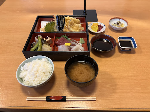 日曜日午後1時半頃、ふたりで初訪問。 先週は色々たいへんだったので、ご褒美ランチに出かけました。 上天ぷら定食1650円と松花堂弁当2000円、レモンチューハイ450円を注文しました。 お刺身は新鮮で魚の臭みが全くなく、好き嫌いの多い私が全部食べることができました。天ぷらは食べ終わるまでサクサクでした。お味噌汁はしじみ入りで赤だしなのに甘く美味しかったです。松花堂弁当には、サザエとイクラも入っていました。デザートのコーヒーゼリーも美味しかったです。ご飯はご主人の方から、おかわりを気にかけてくださいました。 とても感じの良いご夫婦で、居心地が良かったです。「とても美味しかったです。」と言うと、ご主人は「お口に合いまして良かったです。」と言ってくださいました。店内は清潔で、子どもが楽しめる絵本や、アンパンマンのお家の形をしたおもちゃもありました。 家族へのちょっとしたご褒美に、大切なお友だちとの会食に、向いているお店だと思いました。格式張らずに、気持ち良く美味しい和食を楽しむことができました。今日はご馳走様でし...