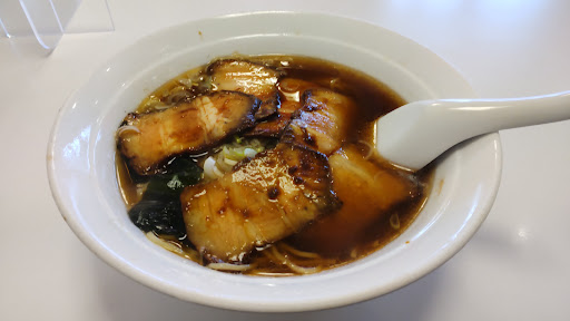 Read more目当ての街中華屋がたまたま臨時休業で、近くの中華を検索して来店してみました。 駐車場が傾斜があって停めにくいです。 ランチ時に お客さまは自分以外に主婦グループ3人様のみ。 メニューはランチセットなどありません。醤油ラーメンと餃子を注文しました。店主と思しき女性がワンオペで頑張ってらっしゃるようです。 ラーメンはやや厚切りのチャーシューが2枚!思いがけずこれがメチャクチャ美味しい😋遠赤直火焼き なのだそう。しかしこれ以外は至って普通の味。餃子に関しては皮もなんか油でベチャベチャであんまり…という感じ。しかも写真にあるように盛り付けも投げ出したまんまのテキトーな感じで、味以前に思いやりとか配慮が無いのが悲しかった(-_-) 注文は自分しかいないのだから、ワンオペは言い訳にならないと思います。