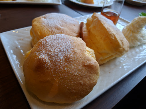 Read more初めてパンケーキを食べる為に行きました。ただ、焼き上がりの時間が2時からと決まっているので、ランチも兼ねて。 とりあえずオムライスの単品を注文。友人たちとお喋りしながら待ちます。オムライス到着時にパンケーキを注文しておきました。この時点でも店員さんから、焼き上がりは2時になりますが宜しいでしょうかと確認してくれました。過去に知らないで来てのトラブル防止でしょうか?口調も大変丁寧でした。 残念なのが、ランチにフォーク類が一切出なかった事。忘れていたようで、店員さんを呼ぶと丁寧な謝罪と共にすぐに届きました。 パンケーキは始めてもあり、ワクワク。見た目もシュークリームっぽい生地で、あったかくフワフワ!フルーツも付いてパンケーキは3個のセット。ランチ後もあり、3人で分けました。メイプルシロップや生クリームで味変も出来、満足を超えた充実感!しあわせなひととき。また、かなりの長居になったのですが、視線も全く気にならず、外に喫煙場所もあったりと、人気があるのが分かります。パンケーキ自体、他にも美味しい場所はあるでしょうが、居心地の良さで、ぜひまた行きたいですね。カウンタ席も見えましたので、ひと...