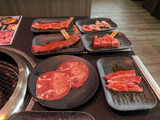 おー、お肉は厚みが有るカットで下味も程々で良いですね。 お肉も色鮮やか新鮮な感じです、食べ放題として充分な美味しさで満足。 あ、写真撮って気付きました、照明にカラクリが有りそう、天才。 タレもいくつか有り、薬味も注文で持って来てくれます。 大混雑の満席でしたが提供スピードは早いと思いました、スタッフさんと配膳ロボットは大忙しです。