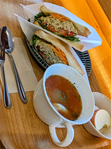2023年12月11日、月曜日、午後1時頃、ひとりで初訪問。 ハナヤサイさんだった頃、1度伺ったことはあるのですが、SHIKISAi(最後の小文字iがお洒落)さんになってから、初めて伺いました。 数週間前、フォロワーさんがレビューされていたので、気になっていました。 それで、フォロワーさんと同じものを注文してみました。 ランチメニュー表から、 ホットサンド(スープ、果物付き)バジルチキン 880円 アイスコーヒー 250円 です。 カウンター席の奥に座りましたが、落ち着くし、お料理の提供は早いし、ボリュームはあるし、美味しくて、かなり気に入りました。 ハナヤサイさんだった頃、ランチで1度入店した時は、かなりお料理の提供に時間がかかり、健康志向なのは良いけれど、スープなどが口に合わず、以来敬遠していたのですが、今日、SHIKISAiさんで、初めて、ランチをいただいて、気持ちに変化がありました。美味しい、ボリュームがある、早い、リーズナブル、落ち着く、良いお店だなあと思いました。 1階、2階には、和雑貨や、こだわり食品等も販売されており、時間があれば、ゆっくり良品を眺めて選ぶのも良いなと思いました。 今日は、良いランチタイムを過ごすことができました。 フォロワーさんに、感謝をこめて。
