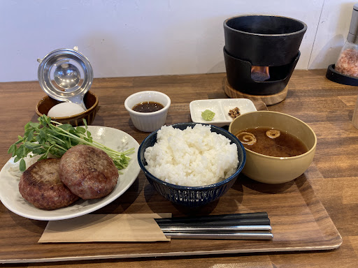 ハンバーグダブル¥1500/トリプル¥1800です。 パンケーキは私が食べたプレーンで¥1200円くらい?でした。 2022年12月にオープンされています。 愛知県幸田町と西尾市にそれぞれ本店を構えるお店で全国に店舗&フランチャイズ展開されています。 オープンしてまもないのでスタッフの方も大変な様子でした。 店内混雑時は待ち記入用紙に名前、人数、の他に車ナンバーを記入すると駐車場まで呼びにきてくれます。 この時期に嬉しいサービスですね! 先会計のため注文、支払いをしてから席に着きます。 交通系電子マネー、クレジット、PayPayが利用可能だそうです。 ハンバーグはレアーで出てきるので固形燃料のついた鉄板で自分好みに焼けます。 燃料が切れたら追加無料! ソースはステーキソース、卵、わさび、食べる醤油がありいろんな感じが楽しめます。 ご飯はお代わりできるためかなり満足できます。 牛肉100%でこの値段でお得です。 パンケーキはパンケーキのみ頼む人とハンバーグの後に頼む人と様々ですが注文を受けてから焼くため20分程提供までに頂くようです。 台湾パンケーキは初めてでしたが国産小麦を使用しておりフワフワとし厚みもあり美味しく頂きました。 パンケーキはテイクアウトも行っておりテイクアウト商品はお手頃価格で購入できます! パンケーキは種類豊富で季節限定品もあったりするのでお店のインスタをチェックしてください! 店内はおしゃれで過ごしやすい雰囲気です。 土曜に伺いました。 駐車場満車と少し待ちましたが待ってでも食べたい味です! 友人にもおすすめしました。 また来店したいと思います。 文句なしの満点💯⭐...