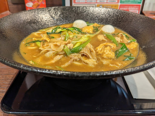 Read more前田南町にあるスーパーのバローや家電のエディオンからもそれほど離れていないカレー屋さんです。ホームページにあるまろやか豊橋カレーうどんを食べに行きました。開店してあまり時間が経ってない頃に入店しましたが、なかなか案内されず、空いているのにボードに名前と人数を書きこんだ所でカウンター席へ。オーダーを聞かれてメニューを見ると、まろやか豊橋カレーうどんが見当たらない。スタッフに聞くと豊橋カレーうどんはこれしか無いとメニューをにある豊橋カレーうどんの事を説明されました。ホームページと表記は違うものの、値段は合致するのでそれをオーダーしてしばし待ちました。届いた当のカレーうどんは麺は独特の形状で手作り感があります。器も丼とも皿ともつかない、これまた独特の形状をしています。ホームページを見ると市内同グループのもう一軒の店舗の物とは上にチーズがかかっているかどうかの違いしかわかりません。1日10食限定の様なので、その部分と味と量と価格をどう見るかでしょうか。店舗も駐車場もあまり広くはありません。駐輪...