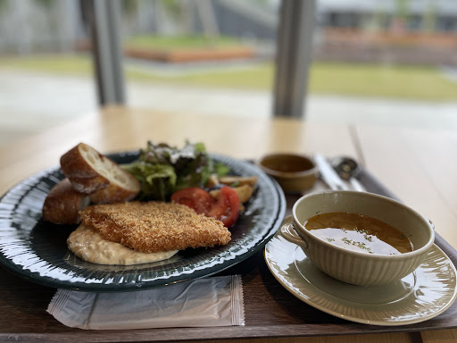 Read more岡崎を中心に活躍しているYouTuberさんの動画を見て絶対に行きたい!という気持ちで行かせて頂きました。 確実に間違いないという確信はあったのですが、実際には… やっぱり最高でした!!様々なジャンルの食べものがあるのは勿論のことなのですが、どれも見た目から惹きつけられるものばかりでした。 今回頂いたのはペペロンチーノとトリコローレ五平餅です。具材たっぷり、味付けもしっかりされているので非常に満足度高いパスタでした。五平餅といえば味噌が塗られているものを想像しますが、こちらの五平餅はなんとも鮮やかでバジル、トマト、チーズと言ったTHEイタリアンと味噌と米の和と謎に感じるのに、食べてみるとちゃんと調和されてる、不思議なのにいつまでも食べていたくなる美味しさを秘めた新時代を切り開く五平餅でした。ここでしか食べられない新しい五平餅をぜひご賞味頂きたいです。 飲み物も幅広く用意されてて、私はトマトジュースを頂きました!アルコールもあるので大人の方も楽しみながら食事ができます! 今度は...